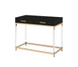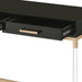 - Modern Design: The Adiel Black & Gold Finish Sofa Table features a sleek metal frame with a rich black rectangular tabletop, offering a contemporary and sophisticated appearance.