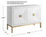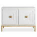 A Contemporary Geometric Two Door Accent Cabinet, Constructed From Deeply Grained Fir Wood Finished In A White Stain, Accented With Brushed Brass Hardware. Has One Fixed Interior Shelf.