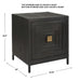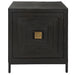 A Contemporary Geometric Accent Cabinet, Constructed From Deeply Grained Fir Wood Finished In A Dark Ebony Stain And Accented With Brushed Brass Hardware. Has One Fixed Interior Shelf.