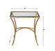 Gracefully Arched Hand Forged Iron Finished In Heavily Antiqued Gold Leaf. Top Is Clear Beveled Tempered Glass.