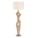 This Contemporary Floor Lamp Showcases A Solid Wood Base Carved In An Abstract Design With An Aged Driftwood Finish, Resting On A Plated Antique Brass Foot With Matching Hardware. The Oval Hardback Shade Is In A Casual White Linen Fabric.