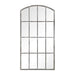 Contemporary And French Country Styles Merge In This Arched Mirror. Reminiscent Of A Large Window, This Piece Features A Hand Forged Iron Construction With An Aged Rust Gray Finish That Has Been Distressed And Covered In An Off-white Wash.