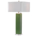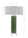 Finished In A Striking Tropical Green Glaze, This Ceramic Table Lamp Is Accented By Thick Crystal Ornaments And Brushed Nickel Accents. The Square Hardback Shade Is A White Linen Fabric.