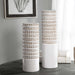 Set Of Two Ceramic Vases Finished In A White Glaze With Taupe Accents, Beaded Texture And A Ribbed Interior. Sizes: S-5x14x5, L-5x18x5