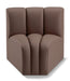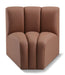 Unleash modern opulence with the Arc Vegan Leather Curved Corner. Crafted for the modern connoisseur, this chair injects an air of refined luxury into any space. Its sleek silhouette, upholstered in supple vegan leather, exudes timeless sophistication while the deep channel tufting adds textural intrigue, further elevating the chair's visual appeal. The modular design makes it a versatile chameleon, effortlessly adapting to your evolving needs and preferences. Whether you envision it gracing a chic living room corner, basking in the glow of a bedroom window, or adding a touch of drama to a home office, the Arc seamlessly complements your unique interior aesthetic.
