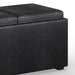 - Features a 5 piece ottoman set with 1 large rectangular ottoman and 2 smaller ottomans, large interior storage space, two flip over serving trays