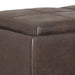 - Upholstered with a durable Distressed Saddle Brown Vegan Faux Leather