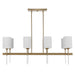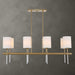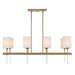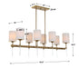A Traditional 8 Lt Chandelier Elongated To A Linear Shape In A Warm Brass Finish Modernized With A Slender Clear Acrylic Accents With Tall White Silken Shades. 8-60 Watt Max Candelabra Sockets. Bulbs Not Included. Supplied With 20' Wire, 6-12" Stems And 2-6" Stem For Adjustable Installation.