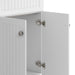 - Cabinet is constructed with melamine and doors are wrapped with PVC, materials that are highly durable, low maintenance, and water resistant