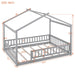 Twin Size Bed House Bed Frame With Fence - Walnut