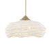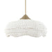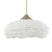Our Refreshing Pendant Features A 24" Scalloped Shade Made Up Of A Variety Of 8 Sizes Of Intermingled Matte White Wood Beads Completed With A Brushed Matte Gold Finish Giving An Airy Inviting Feeling To Any Interior. 5-60 Watt Max Candelabra Sockets. Bulbs Not Included. Supplied With 15' Wire, 3-12" Stems And 1-6" Stem For Adjustable Installation.