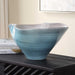 Elevate Your Decor With This Stunning Ceramic Bowl, Featuring A Captivating Blue Crackle Glaze With Gray And White Interior And An Elegantly Wavy Rim. A Perfect Statement Piece For Modern And Contemporary Spaces.