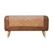 • Large Seagrass Buffalo Hide Nordic Bench - Featuring a seagrass centre base with a buffalo leather hide rim, this footstool is constructed from 100% solid mango wood with chestnut finish legs, ensuring it is stable and durable in the home. It provides a beautiful contrast between both fabrics, and is multi functional meaning it can be used both in the living room and bedroom.