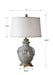 Textured Ceramic Finished In A Distressed Light Blue Glaze With Rust Undertones, Tan Glaze And Silver Leaf Details. The Round, Slightly Tapered Hardback Shade Is Silken Off-white Linen Fabric With Silver Double Trim.