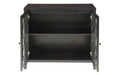 - Elegant Design: This console table showcases a sleek black finish and a clean, rectangular design, adding a touch of sophistication to any room. Its elegant appearance is complemented by two glass doors, offering a modern yet timeless appeal.