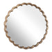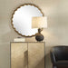 The Cerrito Round Mirror Showcases A Thick Cast Aluminum Frame With A Gracefully Curved Scalloped Design And Subtle Pitted Texture Finished In A Plated Antique Brass.