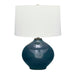 This Stunning Lamp Features A Mottled Deep Blue Ceramic Base With Rustic Undertone And Brass Plated Accents. The Slightly Tapered Round Hardback Shade Is Covered In A White Linen Fabric.