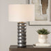 Made From Porcelain, The Corvair Table Lamp Features A Timeless Scalloped Design Finished In Metallic Dark Bronze Glaze, Paired With Brass Plated Details That Adds Depth And Dimension To Its Sleek Design. The Round Hardback Drum Shade Is Made In A Casual White Linen Fabric.