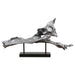 Heavily Antiqued Metallic Silver With Matte Black Stand.