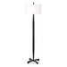 Inspired By Classic Metalwork Designs, This Floor Lamp Features A Tapered Base And An Industrial Inspired Foot Finished In Aged Black With Subtle Rust Distressing. The Hardback Drum Shade Is Covered In A White Linen Fabric.