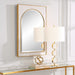 This Iron Mirror Showcases A Gloss White Finish Surrounding The Classic Arch Shape, Accented With Raised Edges Finished In A Lightly Antiqued Gold Leaf. The Mirror Has A 1" Bevel.