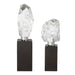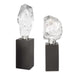 A Stunning Pair Of Modern Sculptures Featuring Raw, Faceted Crystal Formations Atop Sleek Black Bases With Polished Nickel Accents. These Striking Pieces Add A Touch Of Elegance And Contemporary Sophistication To Any Space, Reflecting Light Beautifully For A Mesmerizing Effect. Sizes: S-4x10x3, L-4x13x3