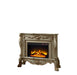 - Antique Gold Finish: The main color of the fireplace is a luxurious antique gold, which complements its decorative moldings and overall design, making it a standout piece.