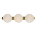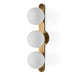 A 3 Light Sconce Designed With Mid-Century Roots Finished In A Warm Antique Brass And Accented With 5" Matte White Opal Globes Yields A Modern Take On Vintage Style. Can Be Hung Horizontal Or Vertical And Can Be Used In Bath Vanity Locations. 3-60 Watt Max, Candelabra Sockets. Bulbs Not Included.