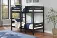 - Space-Saving Design: The Ekko Black Finish Twin/Twin Bunk Bed features a stacked twin-over-twin configuration, maximizing vertical space in your room while providing two separate sleeping areas.