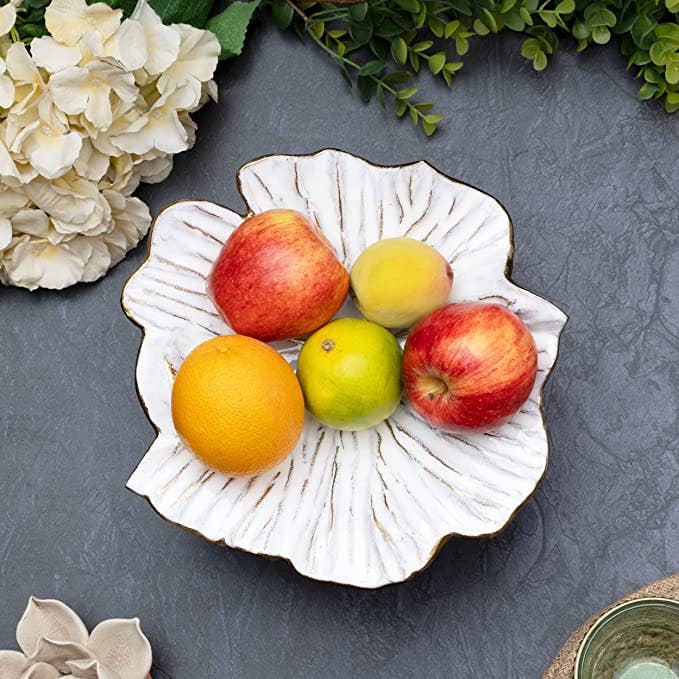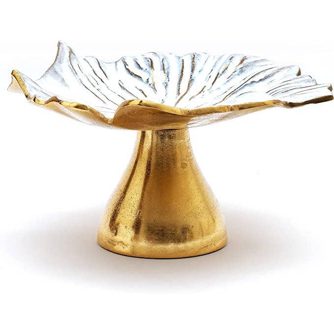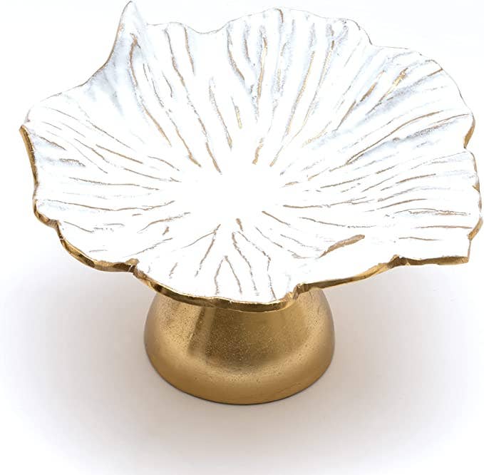 Flower Gold & White Fruit Bowl & Footed Pedestal Cake Stand