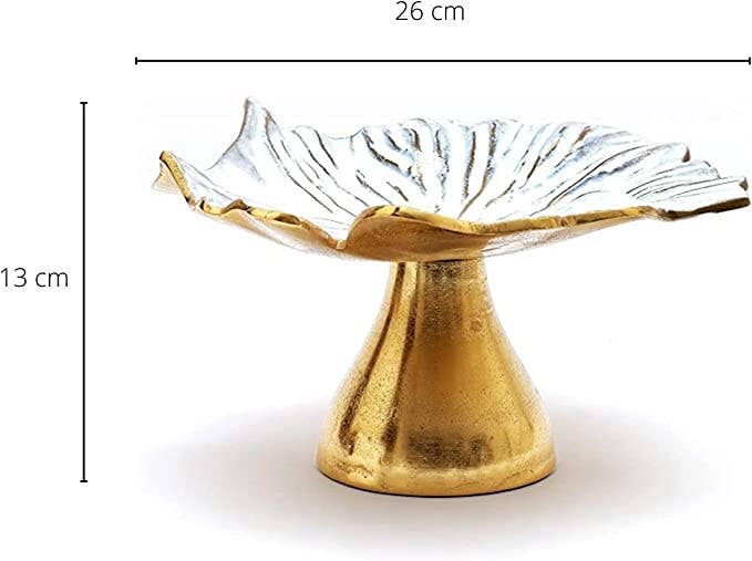 * An impressive cake stand is the perfect way to elevate your dessert table, while being functional and stylish. The White and Gold Footed Cake Stand Plate by Gute's decorative design allows you to display artisanal cakes with ease! Display your beautiful desserts on this elegant gold colored stand for a stunning display. Ideal for weddings, birthdays, baby showers, and more, this elegantly crafted pedestal tray will add an elegant statement to any social gathering or celebration.