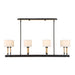 This Casual 8 Light Linear Pendant Blends Into Any Style With Classic Lines, Earthy Blond Wood Accents And A Matte Black Finish. All Topped With A White Linen Fabric Shades. 8-25 Watt Max Candelabra Sockets. Bulbs Not Included. Supplied With 15' Wire, 6-12" Stems And 2-6" Stem For Adjustable Installation.