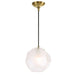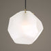 Frosted 8" Geometric Shaped Glass Gives Us The Focal Point For This Celestial Feeling 1 Lt. Pendant Accented With A Rich Matte Antique Brass Finish. 1-60 Watt Max Candelabra Socket. Bulb Not Included. Supplied With 15' Of Black Fabric Covered Wire For Adjustable Installation.