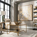 Sophisticated Glamour Exudes From This Hand Painted Abstract On Canvas. On Trend Shades Of Blush And Army Green Are Matched With Vivid Gold Leaf Accents. The Canvas Is Stretched And Attached To Wooden Stretching Bars Then Surrounded By A Heavily Distressed, Mottled Gold Leaf Gallery Frame. Due To The Handcrafted Nature Of This Artwork, Each Piece May Have Subtle Differences. This Piece May Be Hung Horizontal Or Vertical.