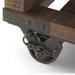 • Features spacious table top, slatted open bottom shelf, X detail on sides, unique iron wheels that offer mobility and can be easily locked into place