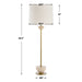 The Hemisphere Buffet Lamp Showcases A Sleek Brushed Brass Base, Elegantly Accented By Two Travertine Half Spheres At Either End, Adding A Touch Of Refinement. The Slightly Tapered Round Hardback Shade Is Covered In An Oatmeal Linen Fabric With Light Slubbing.