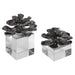 Simple Elegance Is Achieved By These Antiqued, Metallic Silver Lotus Blooms That Appear To Be Floating On Clear Crystal Cubes. Sizes: S-6x5x6, L-6x7x6
