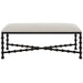 - Sophisticated Style Created By The Whimsical Bubble Legs Ensures This Bench To Stand Out In Any Home. Crafted In Iron With A Satin Black Finish Contrasted With A Cushioned Seat In A Crisp White Textured Polyester Fabric With Performance Treatment.