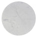 - Features spacious round white marble tabletop, gold powder coated stem and black powder coated pedestal base