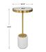 Stylish And Sophisticated, This Round Accent Table Features A Fresh White Faux Shagreen Base Paired With An Iron Support In Rich Brushed Brass And A Beveled Mirror Top.