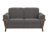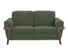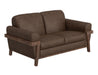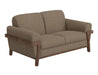 Wooden Frame & Base, Loveseat. Introducing our captivating Loft Brown Collection, where traditional design seamlessly merges with mid-century modern details in this stunning transitional piece. With its distinctive exposed pine wooden legs and frame, retro-inspired rolled arms, and meticulous craftsmanship, this collection features solid wood and 15mm-thick, 5-layer plywood construction, ensuring both the strength and durability of the frames.