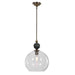 Topped With A Rich Black Marble Ball, This 1 Lt. Pendant Features An Oxidized Aged Brass Finish Enhancing The Simple But Elegant Line. Finishing Off This Look Is A Clear 13" Diameter Glass Globe. 1-60 Watt Max, Edison Socket. Bulbs Not Included. Supplied With 15' Wire, 3-12" Stems And 1-6" Stem For Adjustable Installation.