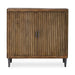 This Mango Wood Cabinet Boasts A Warm, Light Walnut Finish, Highlighted By A Subtle Tambour Design Around The Piece, Adding Visual Interest And Texture. Sleek Matte Black Door Pulls And Legs Offer A Sophisticated, Cohesive Finish.