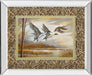 Experience the peaceful beauty of nature with this captivating framed wall art depicting three waterfowl in graceful flight over a tranquil marsh at dawn. The artwork’s soft, natural tones of beige, green, and brown evoke a sense of calm and reflection, perfectly complementing the traditional style. Encased in a sleek silver mirrored frame with a double mat, this piece adds depth and elegance to any living room, office, or den. Protected by premium glass, it offers vibrant color clarity and durability, inviting you to bring the serenity of the outdoors into your home.