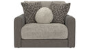 Reddington is a stationary sofa group that the ultimate comfort of our Cuddler Cushion. This dual-fabric application is accented with an ecelectic mix of toss pillows in a variety of textures - including sphere pillows in a luxurious faux fur. Reddington includes a convenient Cocktail Ottoman and is available in one color combination: Slate/Fawn.