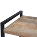 • Features two (2) large drawers, large open shelf, metal frame and drawer pulls in a black finish