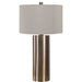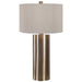 Finished In An Antiqued Brushed Brass, This Table Lamp Keeps It Simple Yet Upscale With A Large Metal Cylinder Base With Matching Accents. The Hardback Drum Shade Is Finished In A Beige Linen Fabric.
