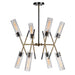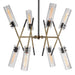 A Dramatic Soft Contemporary Look Blends Straight Lines And Linear Glass To Give Us This Eye-catching 8 Lt. Pendant. Featuring A Combination Finish Of Texture Black And Antique Brass Complementing The Narrow Clear Cylinders Of Glass With Unique Swirled Thread Accents. 8-60 Watt Max Edison Sockets. Bulbs Not Included. Supplied With 15' Wire, 3-12" Stems And 1-6" Stem For Adjustable Installation.