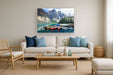 Experience the serene beauty of nature with this stunning photograph capturing a tranquil mountain lake. The vibrant canoes and majestic peaks create a harmonious balance, perfect for bringing a sense of peace and adventure to any space. Ideal for living rooms or offices, this piece invites you to escape into the calm of the wilderness.