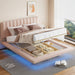 Queen Size Upholstered Hydrualic Platform Floating Bed With LED Light And USB Port - Pink